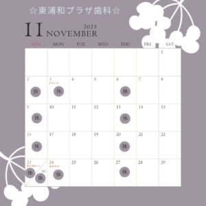 11月の休診日をお知らせいたします(⋈◍>◡<◍)。✧