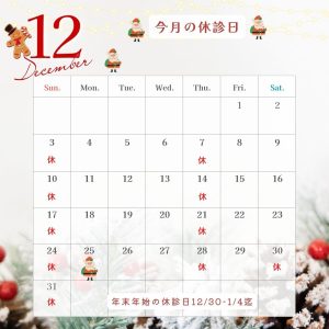 12月の休診日のお知らせです。